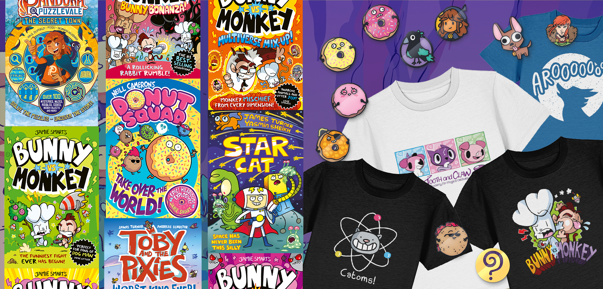 Bunny vs Monkey book and pin badges bundle