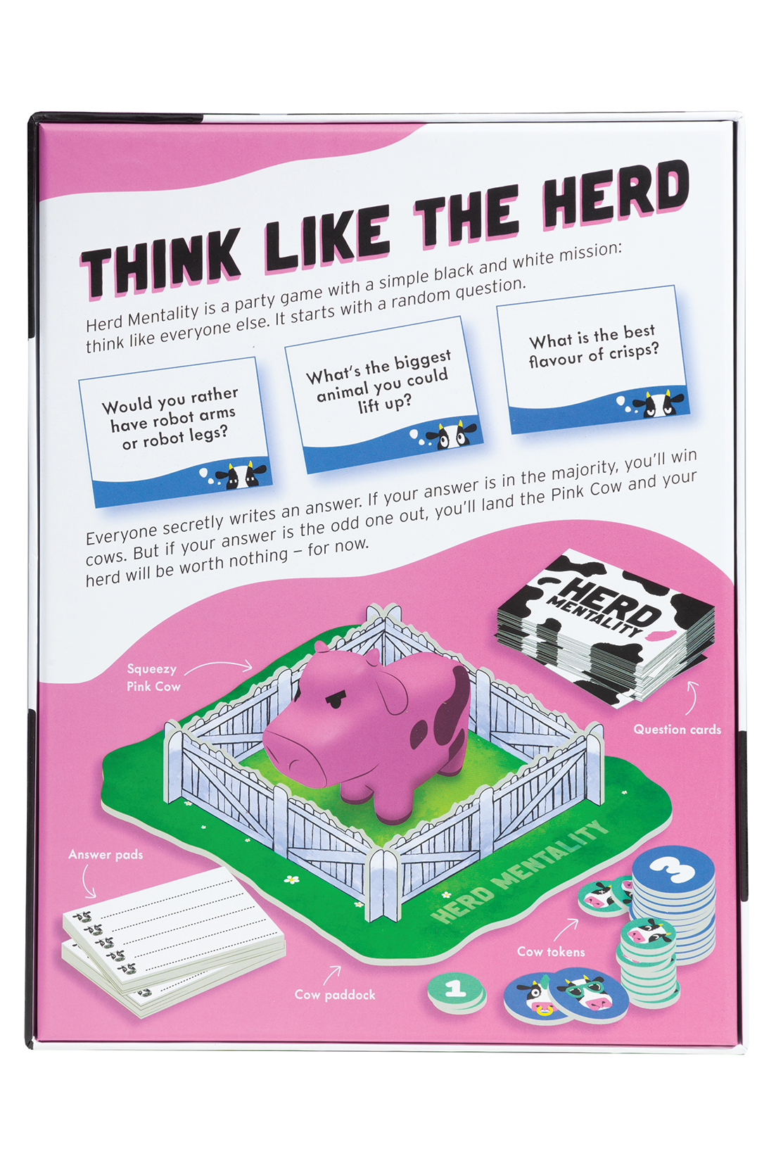 200 questions, 62 cow tokens, 2 answer pads, 1 squishy cow, 1 cow paddock, 1 rules sheet